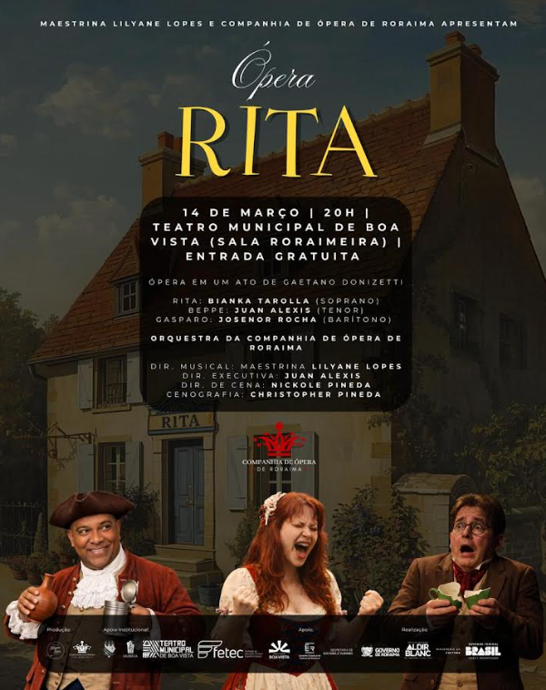 Após o grande sucesso de "Orfeo & Eurídice” na semana anterior, a Companhia de Ópera de Roraima apresenta mais um grande clássico: “Rita”, ópera em 1 ato de Gaetano Donizetti, que será destaque neste sábado (14), às 20h, no Teatro Municipal — sala Roraimeira.