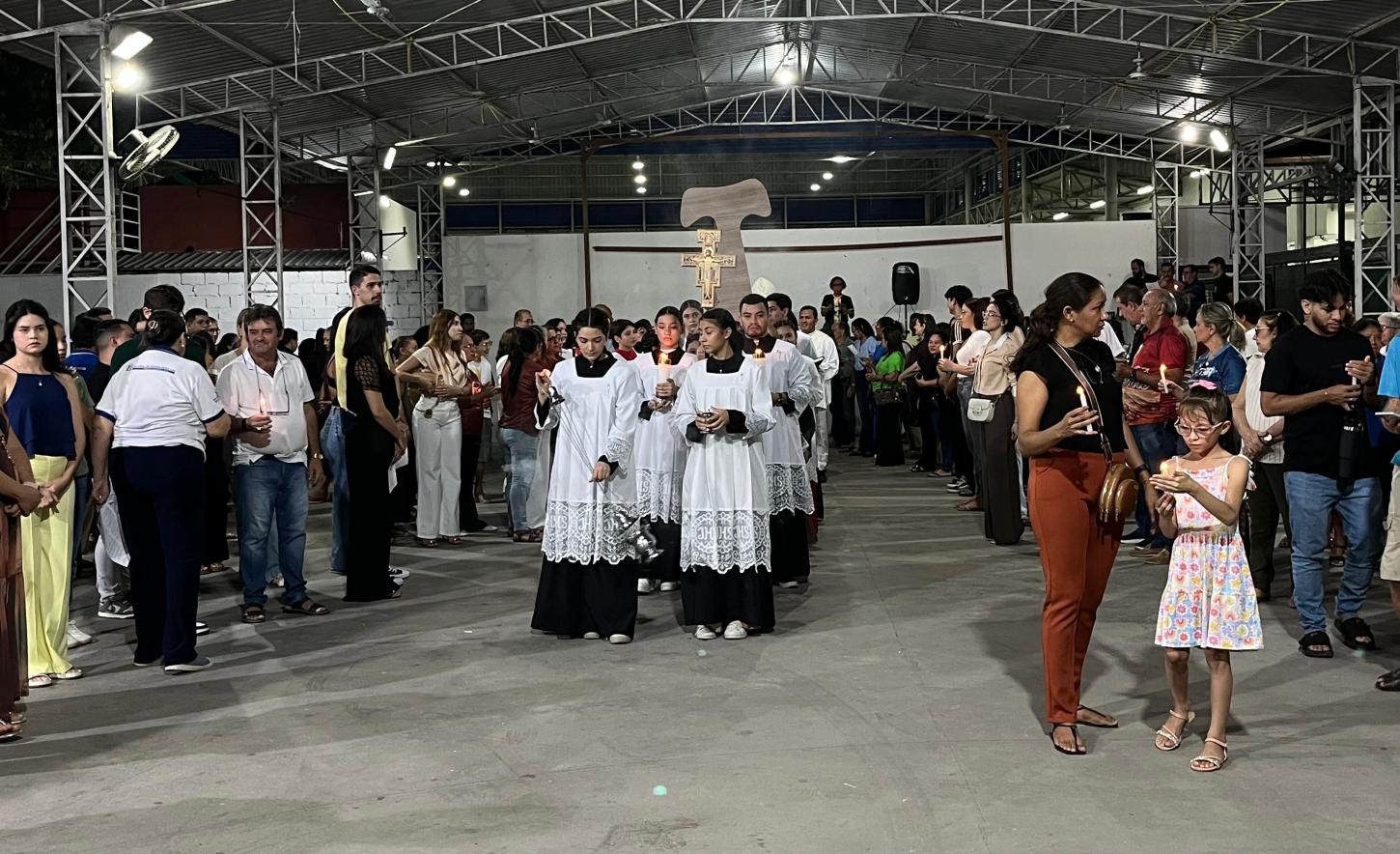 A programação teve início com uma peregrinação, que saiu do salão paroquial Santa Maria, ao lado da paróquia, e seguiu até a igreja, onde foi celebrada a missa.
