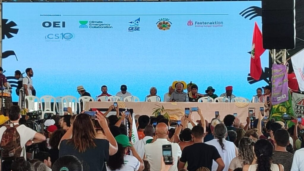A ministra Marina Silva leu a mensagem do presidente Lula à Cúpula dos Povos. Ele disse que “a COP30 não seria viável sem a participação de vocês”, ado que “o combate à mudança do clima precisa da mobilização e contribuição de toda a sociedade, não só dos governos. O entusiasmo e o engajamento de vocês são fundamentais para que possamos seguir nessa luta. Vocês são portadores da força e da legitimidade dos que almejam o melhor”.