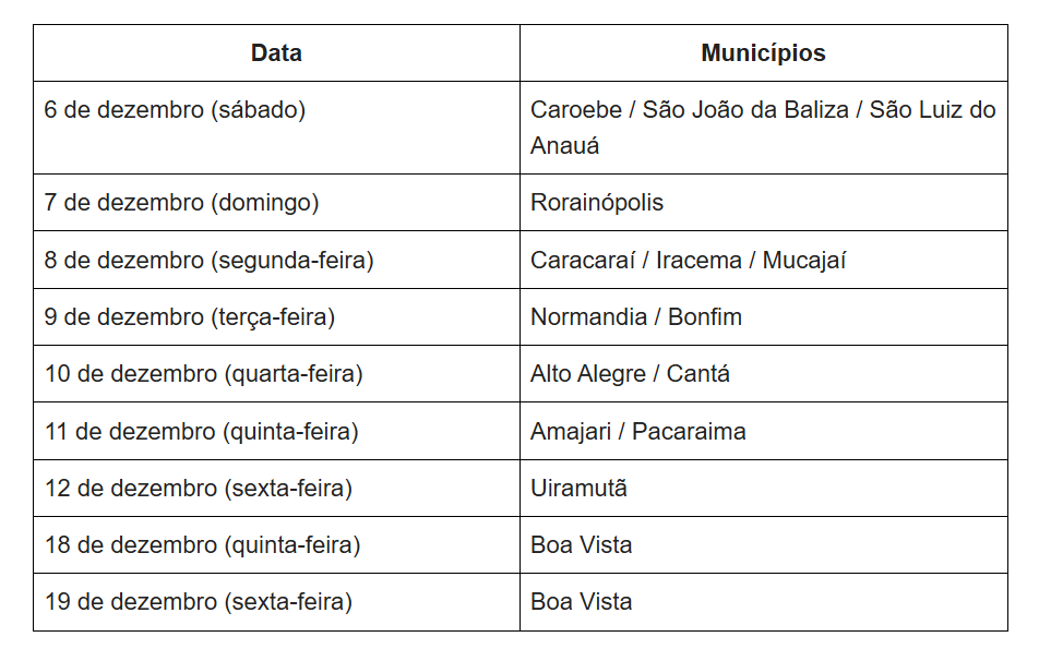 A assistente executiva do DPSB (Departamento de Proteção Social Básica) da Setrabes, Djila Cabral, explicou que a ação ocorrerá nos 15 municípios de Roraima entre os dias 6 e 12 de dezembro. “Essa iniciativa reafirma o compromisso do governo em cuidar das pessoas, garantindo que o Natal de cada criança roraimense seja verdadeiramente especial e mais acolhedor”, disse.