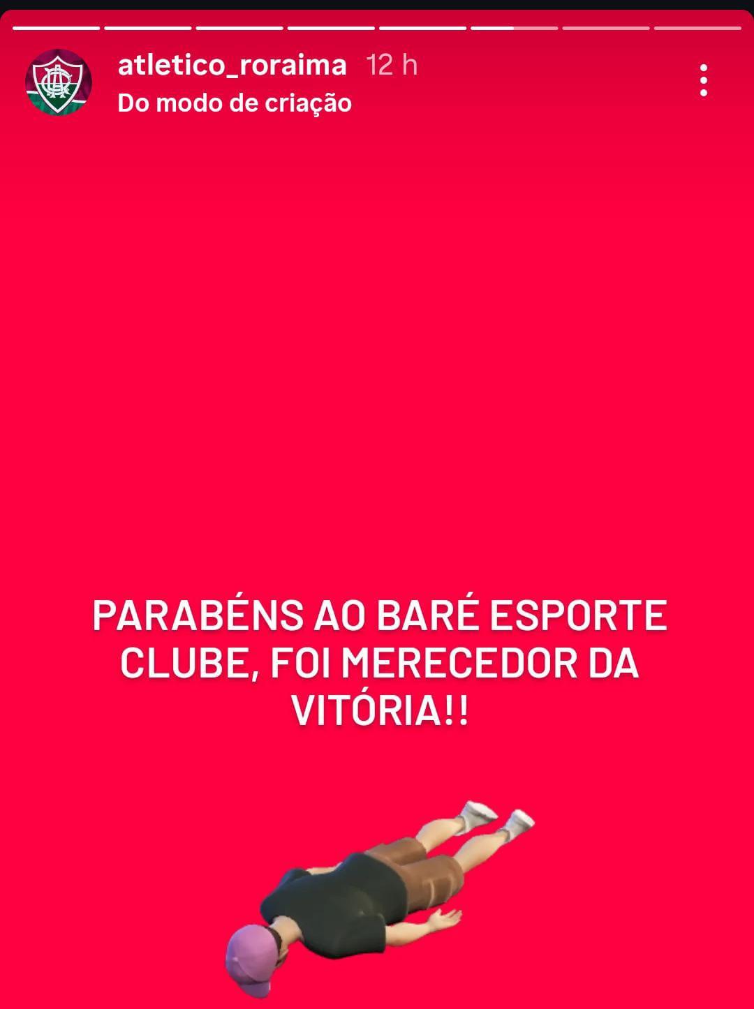 Em tréplica, logo após a derrota, o Atlético Roraima reconheceu a derrota e parabenizou ao adversário pela vitória elástica em sua conta oficial no Instagram.